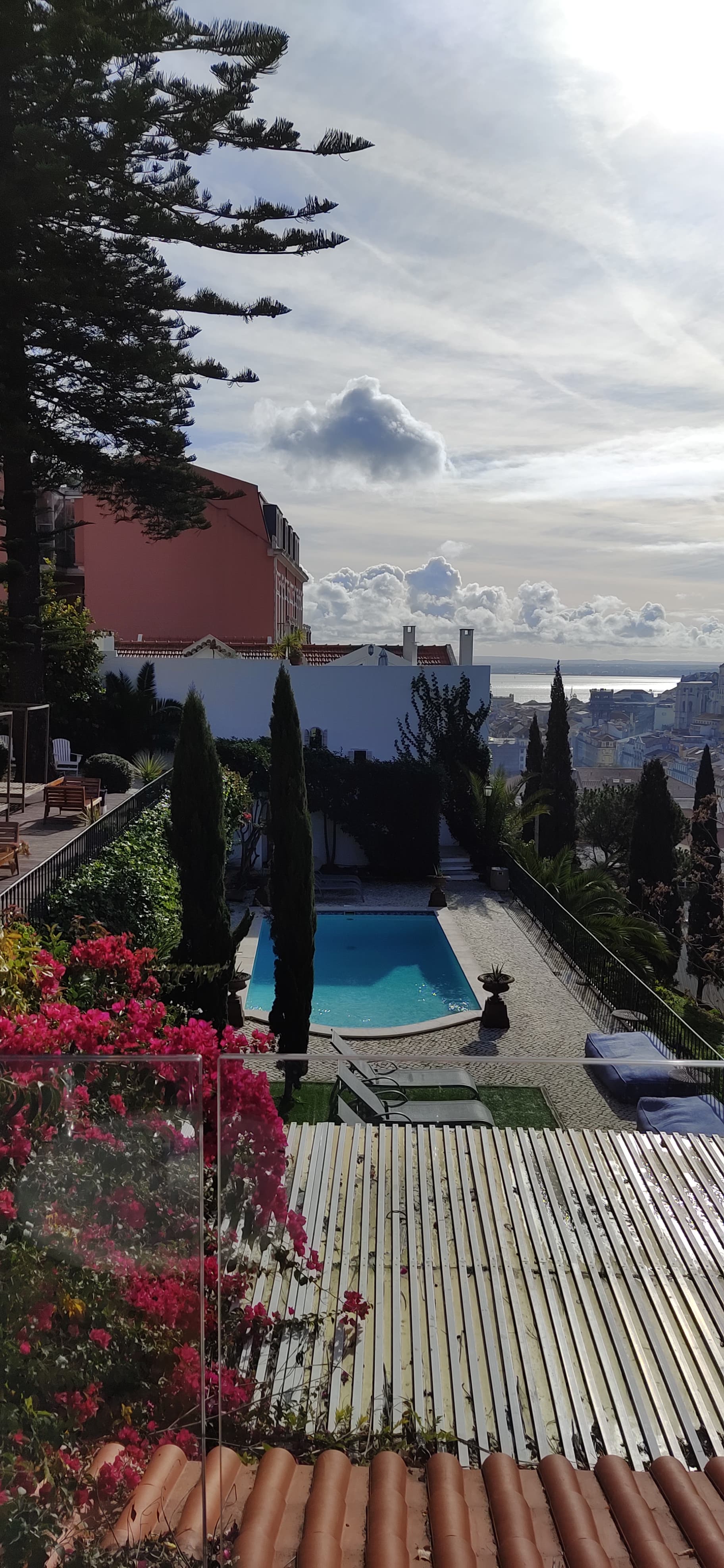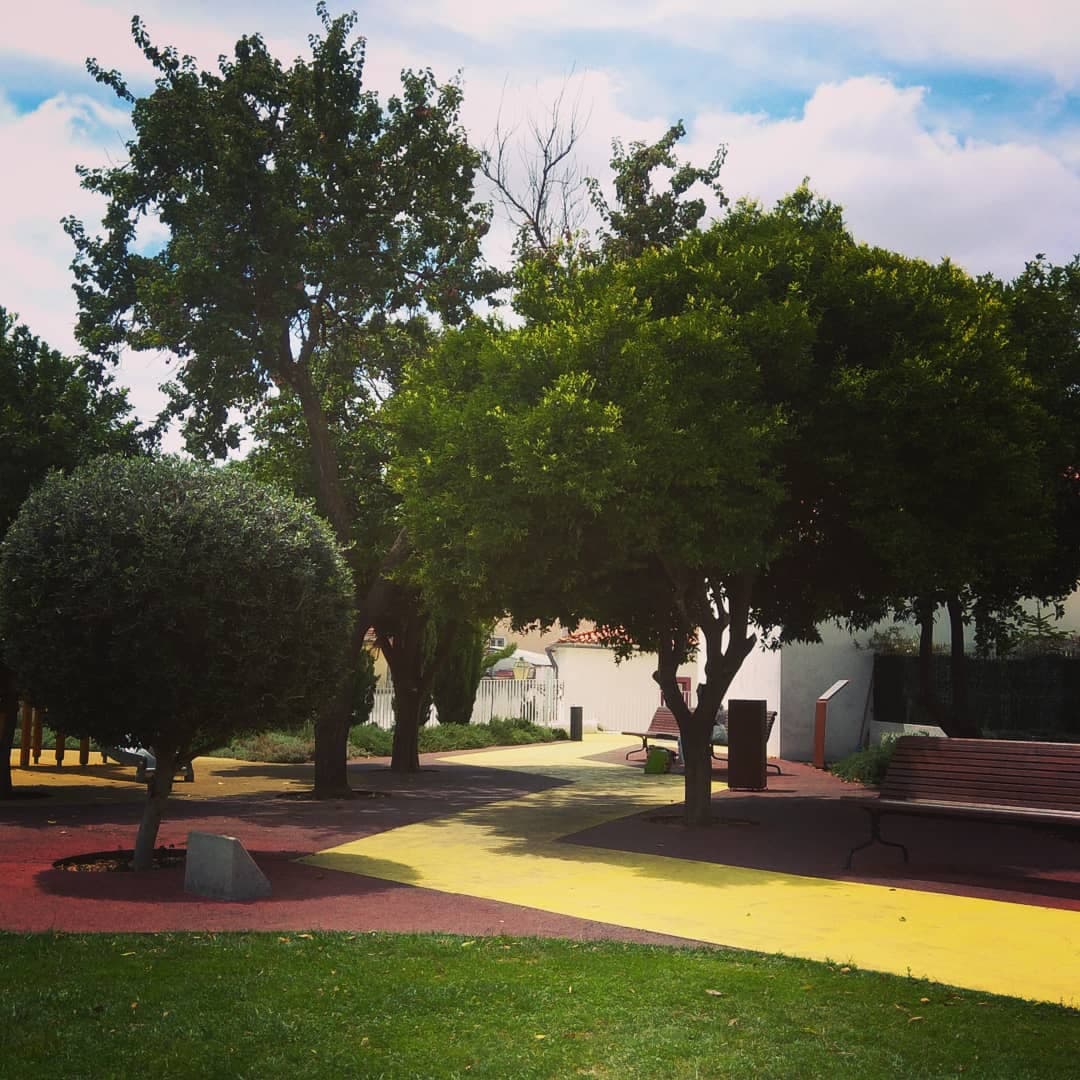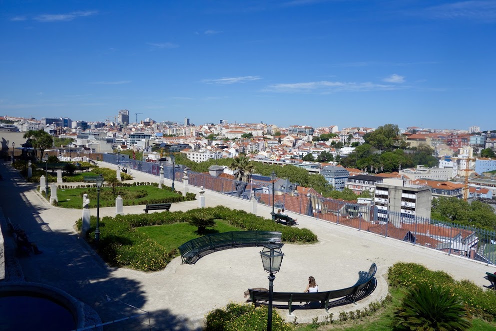 Aí vão encontrar um pequeno parque infantil, algumas máquinas para exercício físico, bancos para sentar à sombra, uma cabine de leitura e uma vista bem bonita sobre Alfama e o Tejo.