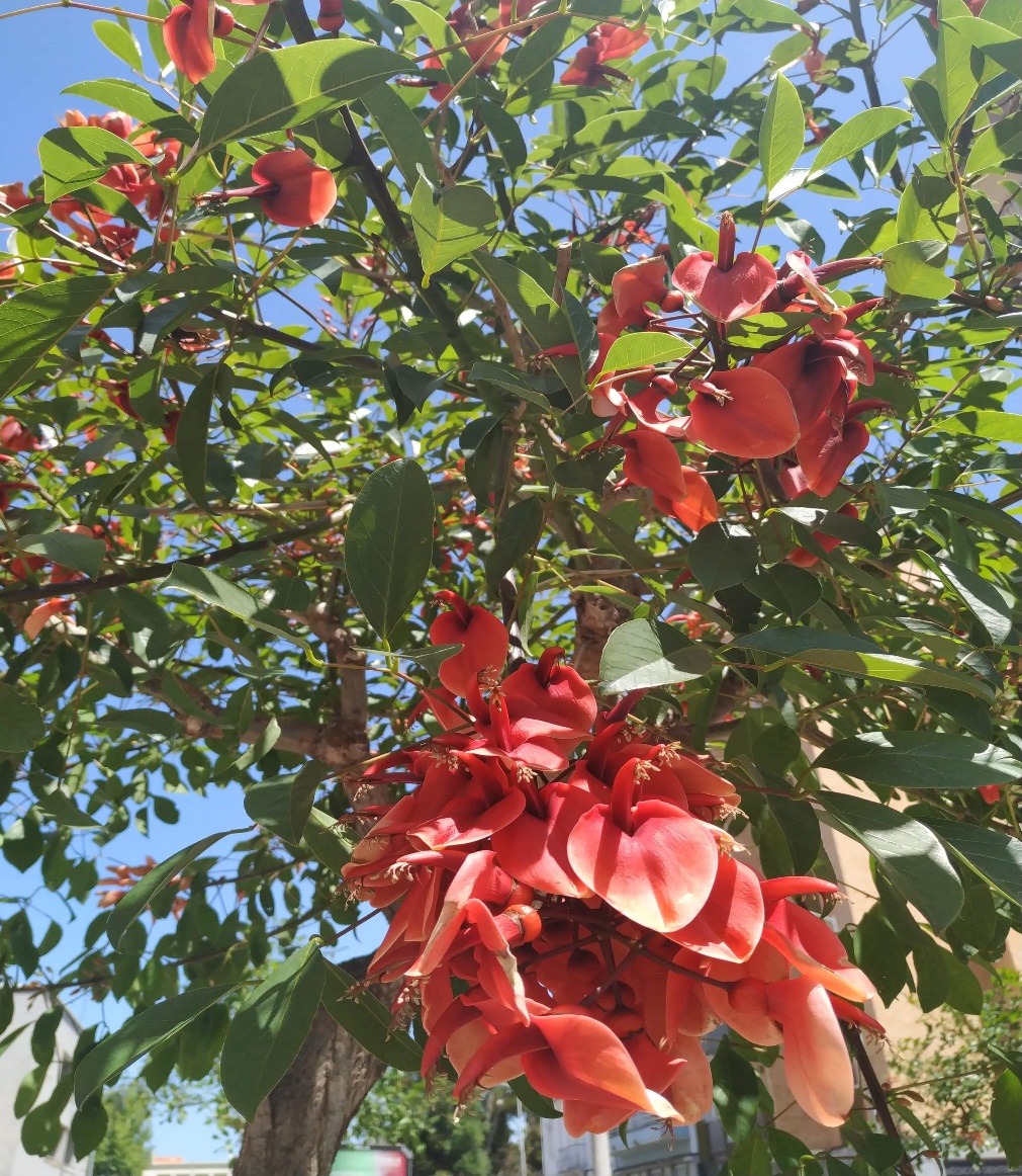 exótica Coralina ou Coraleira vinda da América do Sul, cujo nome científico é a Erythrina crista-galli.