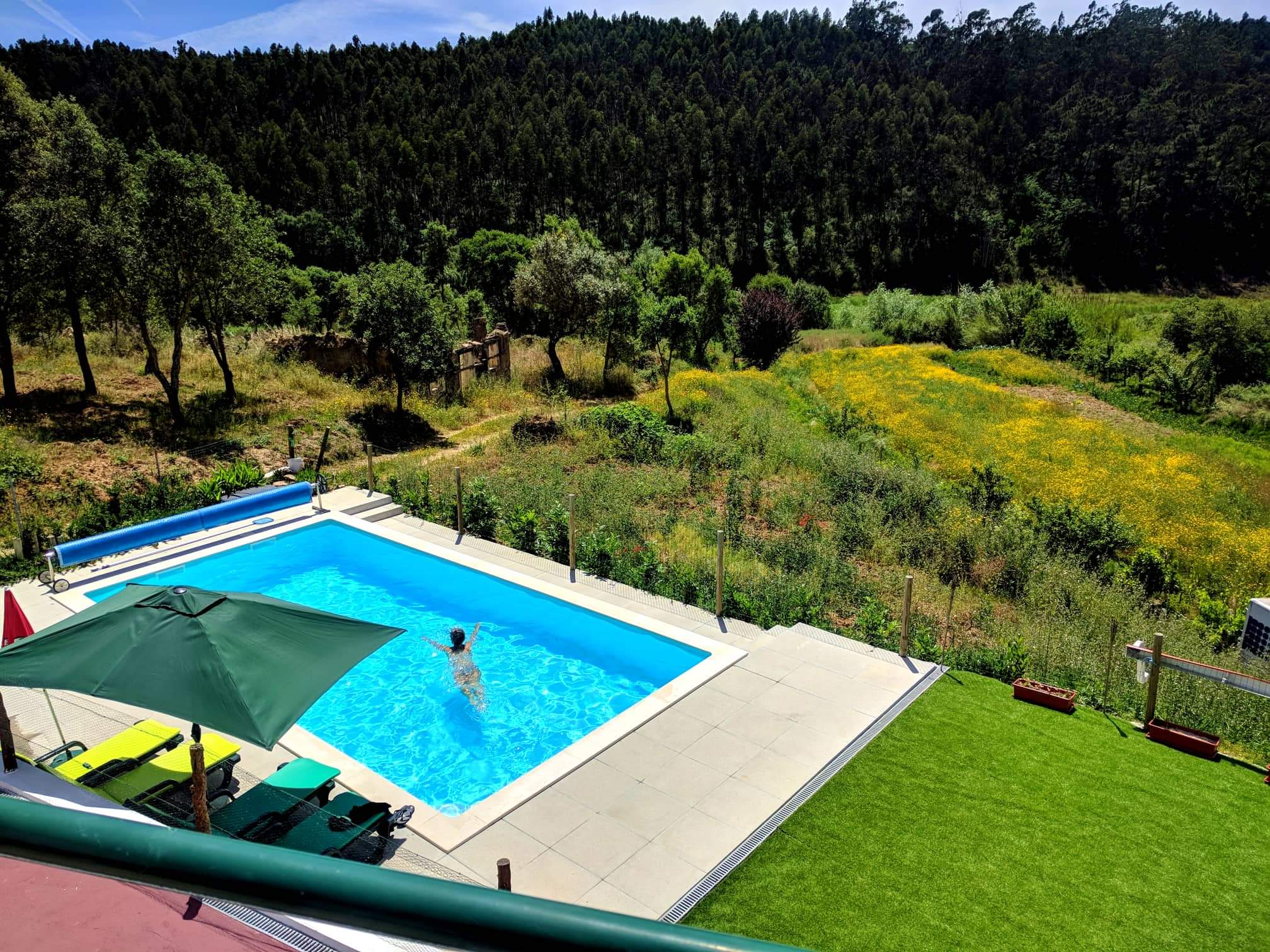 Alugamos uma casa longe do rebuliço das cidades e do trânsito, com piscina, perto de verde para descansarmos, brincarmos, respirarmos ar livre e não termos de nos deslocar inúmeras vezes ao longo do dia.