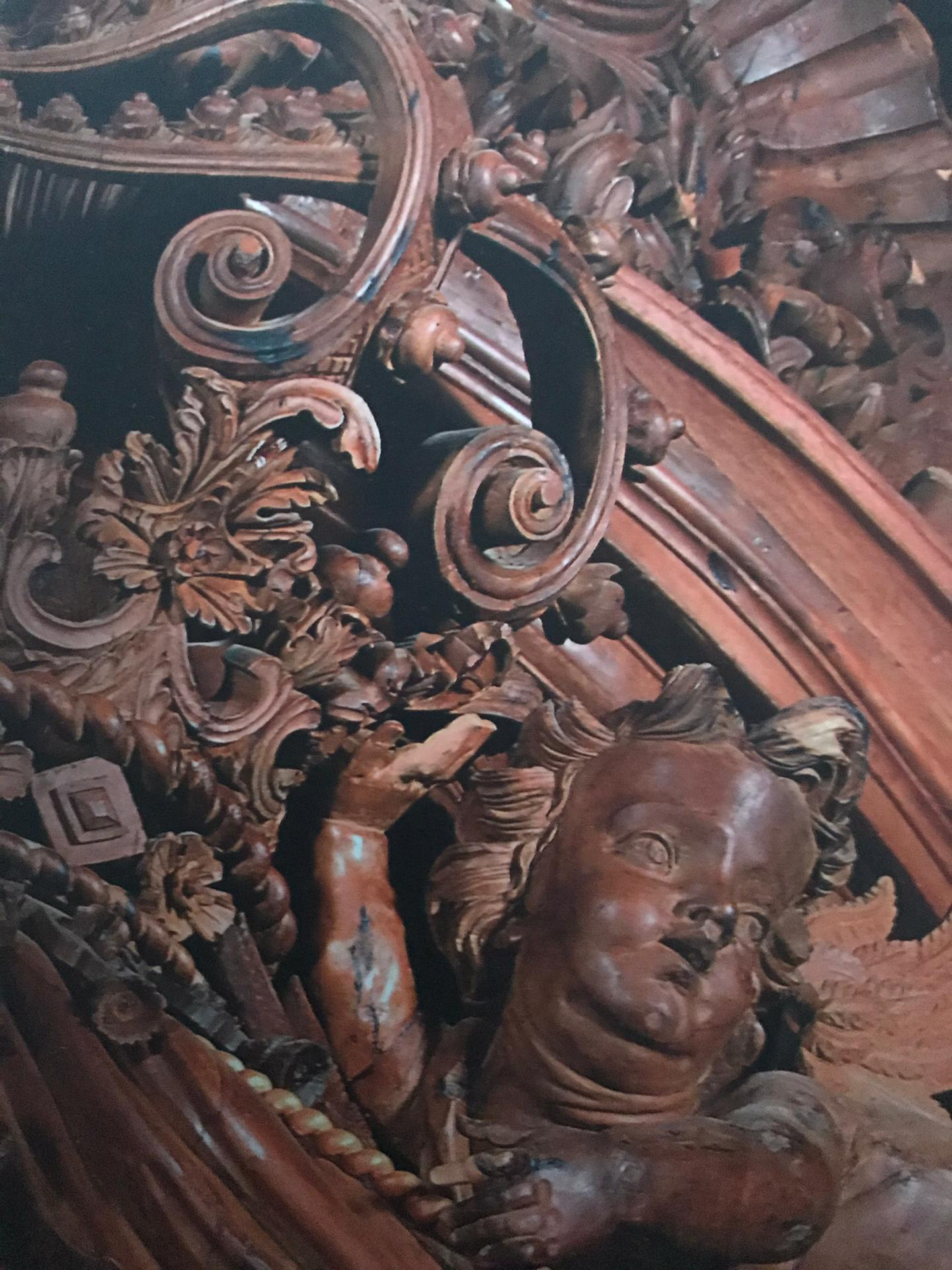 É nos interiores – ao nível da escultura e pintura – que o chamado “barroco brasileiro” ou, mais corretamente, “barroco mineiro” (uma vez que também podemos falar do “barroco cariosa” e do “barroco baiano”) se manifesta em todo o seu esplendor, tendo o Aleijadinho como figura de proa. Na magnífica Igreja de São Francisco de Assis Ouro Preto) “reinventa o barroco” (5). Os trezentos quilos de ouro usados nos altares e igreja de Nossa Senhora do Carmo, também em Ouro Preto, são exemplos da exuberância e mesmo exagero de detalhes deste período artístico. O “barroco mineiro” deixa ver, nas suas imagens, um expressividade comovente e, por vezes, dramática. Uma marca do Aleijadinho expressa-se na colocação de três cabeças de anjo, angustiados, normalmente em forma triangular, nos – ou em redor dos – altares. E que pode ser vista em construções da Horta, Pico e Ponta Delgada (neste caso, no Colégio dos Jesuítas), substituídos por cabeças de Atlantes, numa adaptação à mitologia local. Um pormenor que, a milhares de quilómetros de distância, e não havendo notícia de que o “mestre” tenha alguma vez passado pelos Açores, mostra que as influências brasileiras aqui foram além do acessório.
